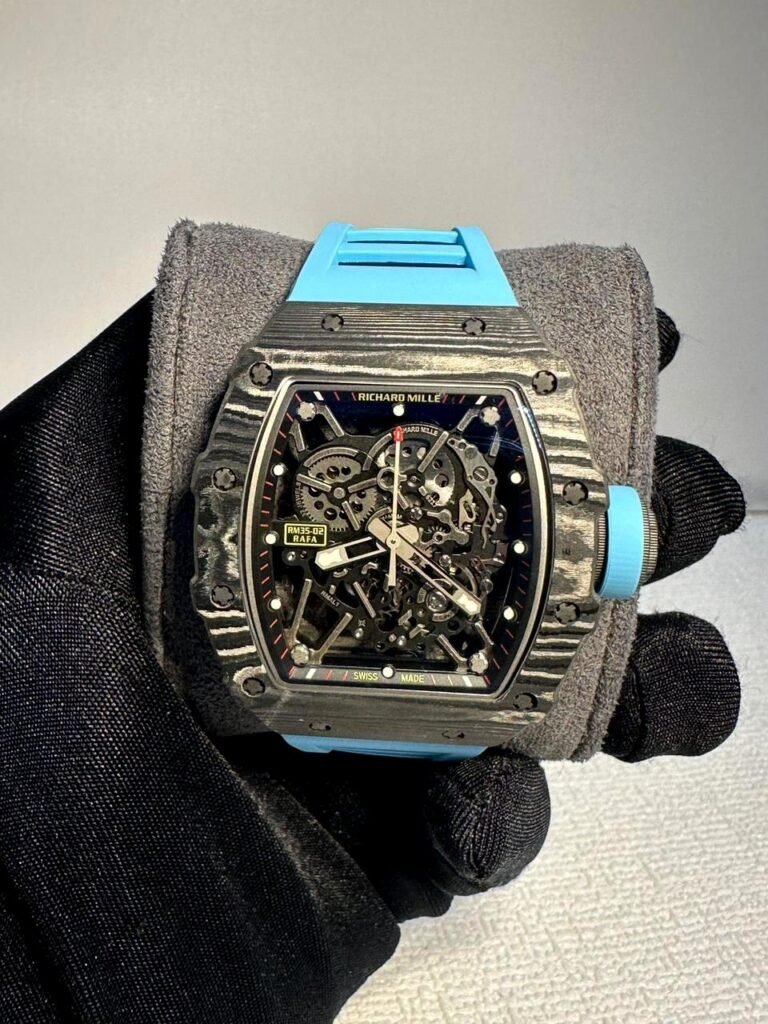 Richard Mille RM 35-02 rafa black bazel with blue strap super clone replica watches in Dubai at watchesindubai.com