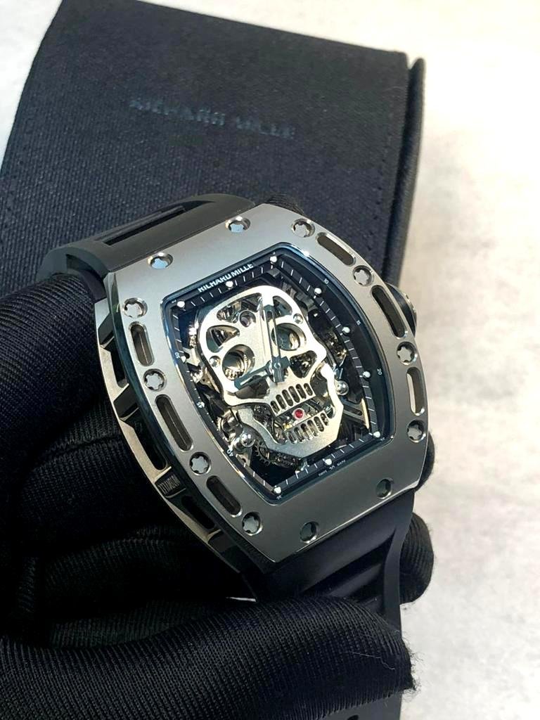 Richard Mille white watch with black skeleton with black rubber strap super clone watches in Dubai
