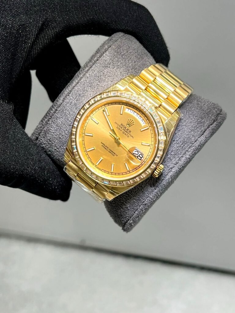 Rolex Day Date Golden Dial with diamond and Flutted Bezel super clone watches in dubai