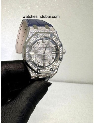 Audemars Piguet Royal Oak with diamond dial leather strap super clone replica watches in dubai