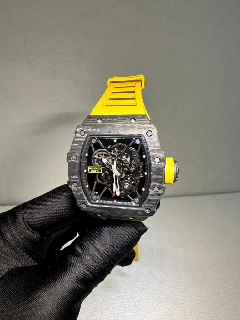 Richard Mille RM 35-01 rafa black bazel with yellow strap super clone watches in Dubai