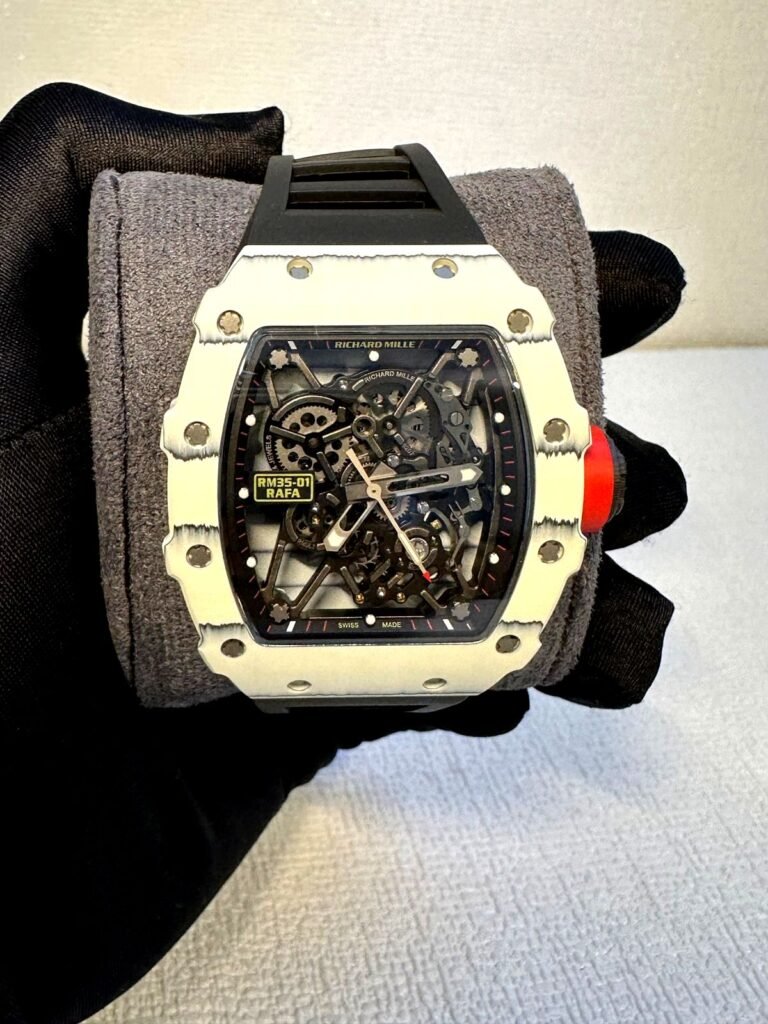 Richard Mille RM 35-01 white watch with Black rubber strap super clone 1:1 watches in Dubai