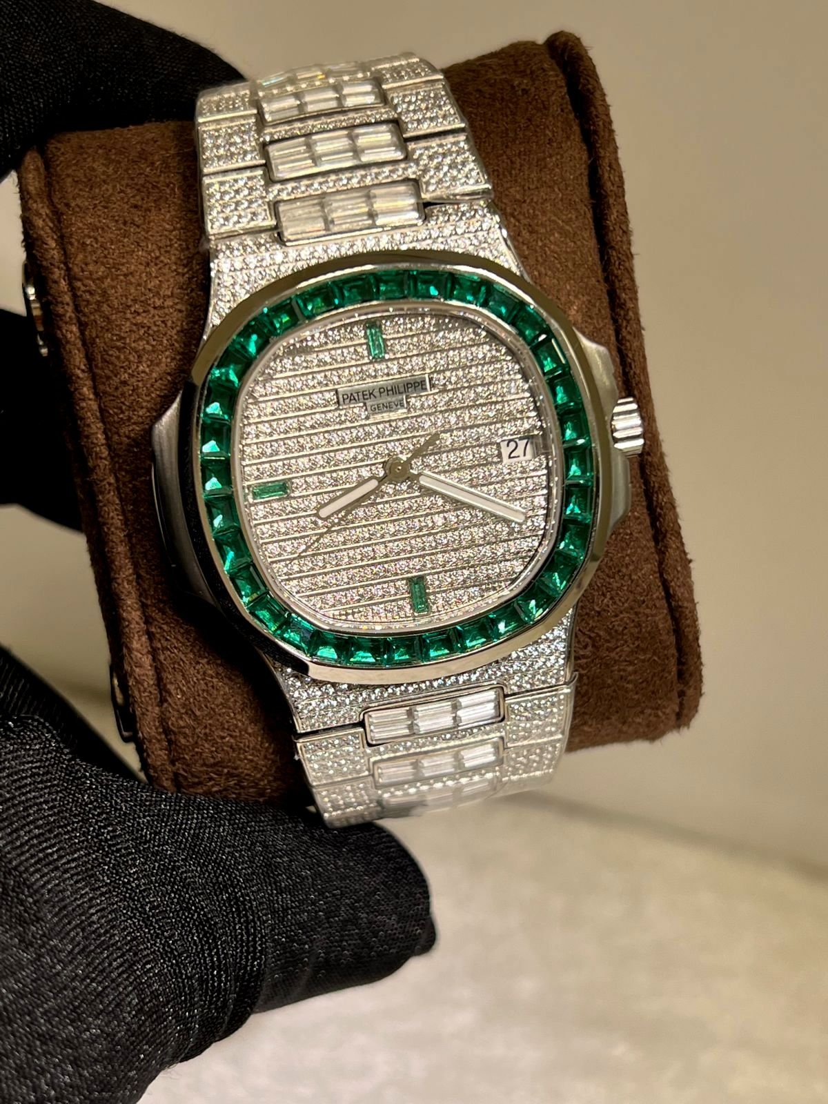 Patek Philippe Nautilus 5711/112P Platinum iced dial with green Rubies Bezel super clone watch