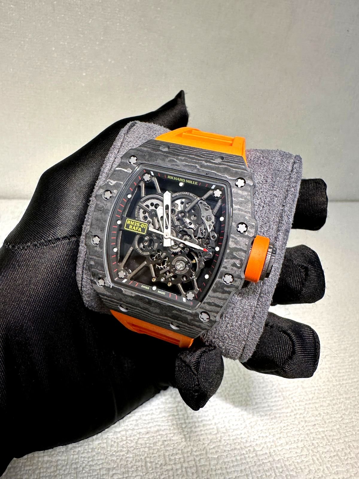 Richard Mille RM 35-01 rafa black bazel with orange strap super clone replica watches in Dubai at watchesindubai.com