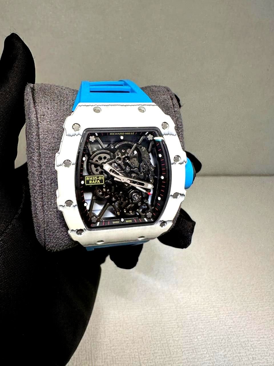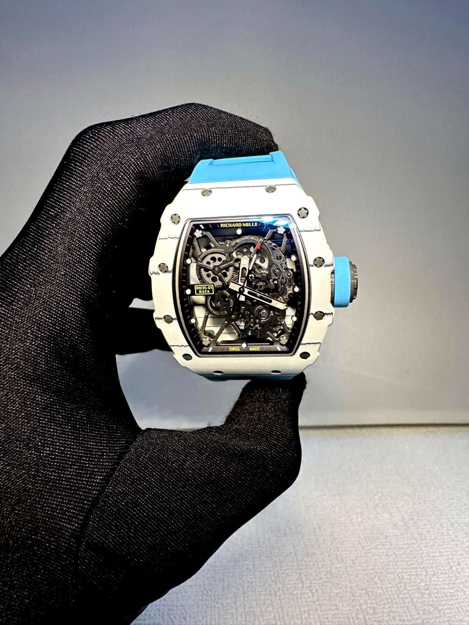 Richard Mille RM 35-01 rafa white bazel with blue strap super clone replica watches in Dubai at watchesindubai.com