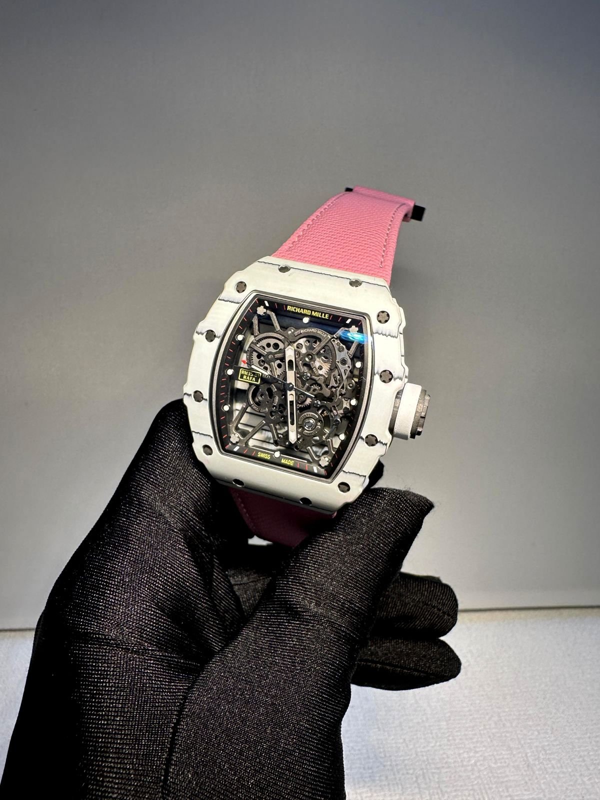 Richard Mille RM 35-01 white watch with pink velcro strap super clone 1:1 watches in Dubai