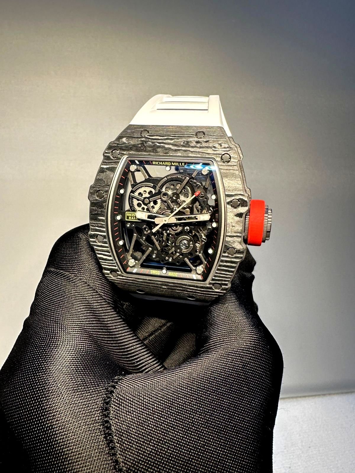Richard Mille RM 35-01 white watch with Black rubber strap super clone 1:1 watches in Dubai