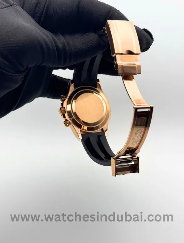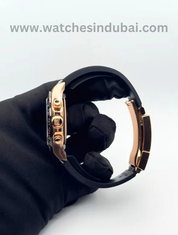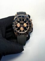 Rolex Cosmograph Daytona Black Dial with rose gold cronograph Rubber Strap Super Clone Watch