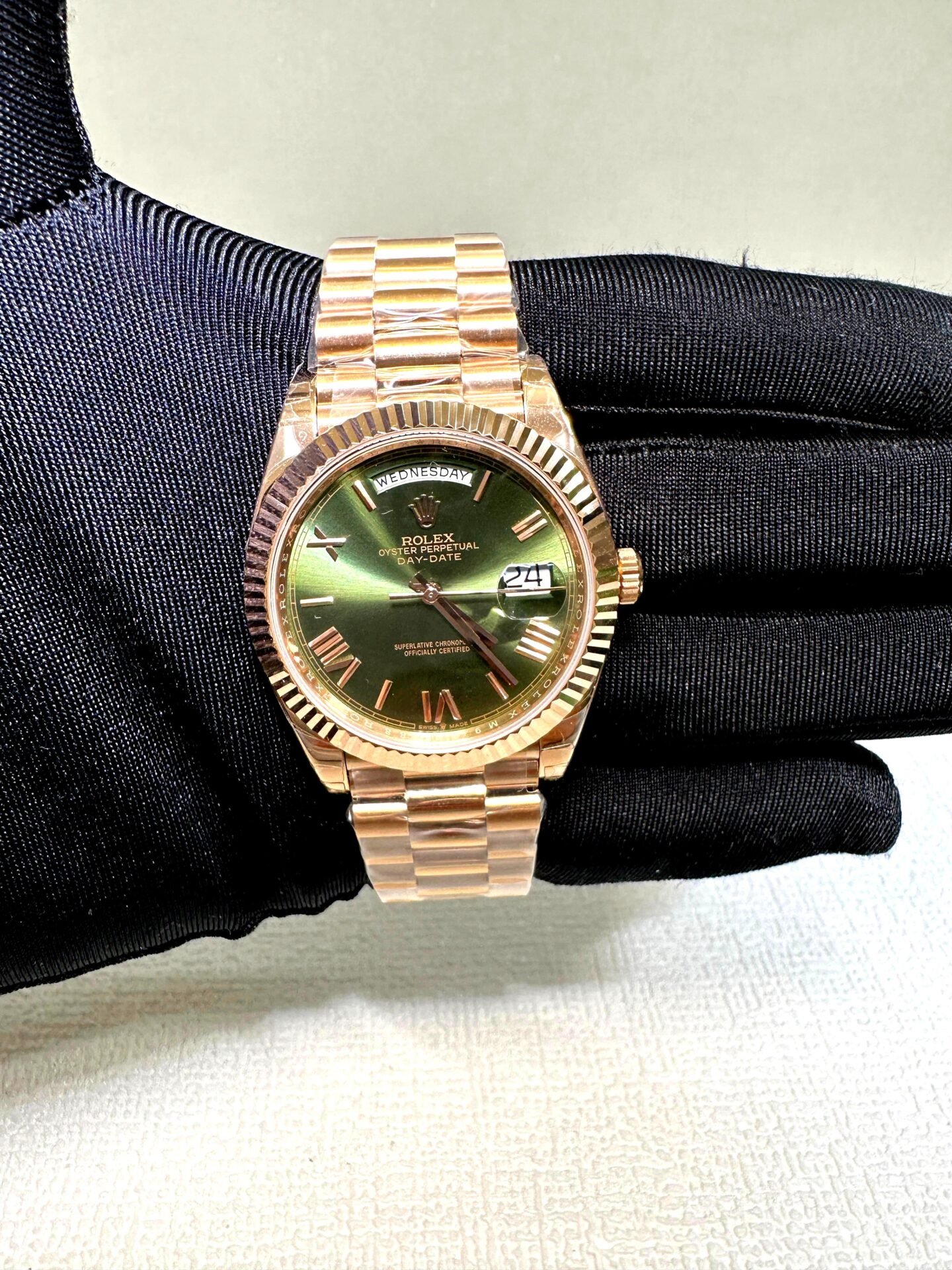 Rolex Day Date 40 mm olive Green Dial with Numeric full rose gold super clone watch