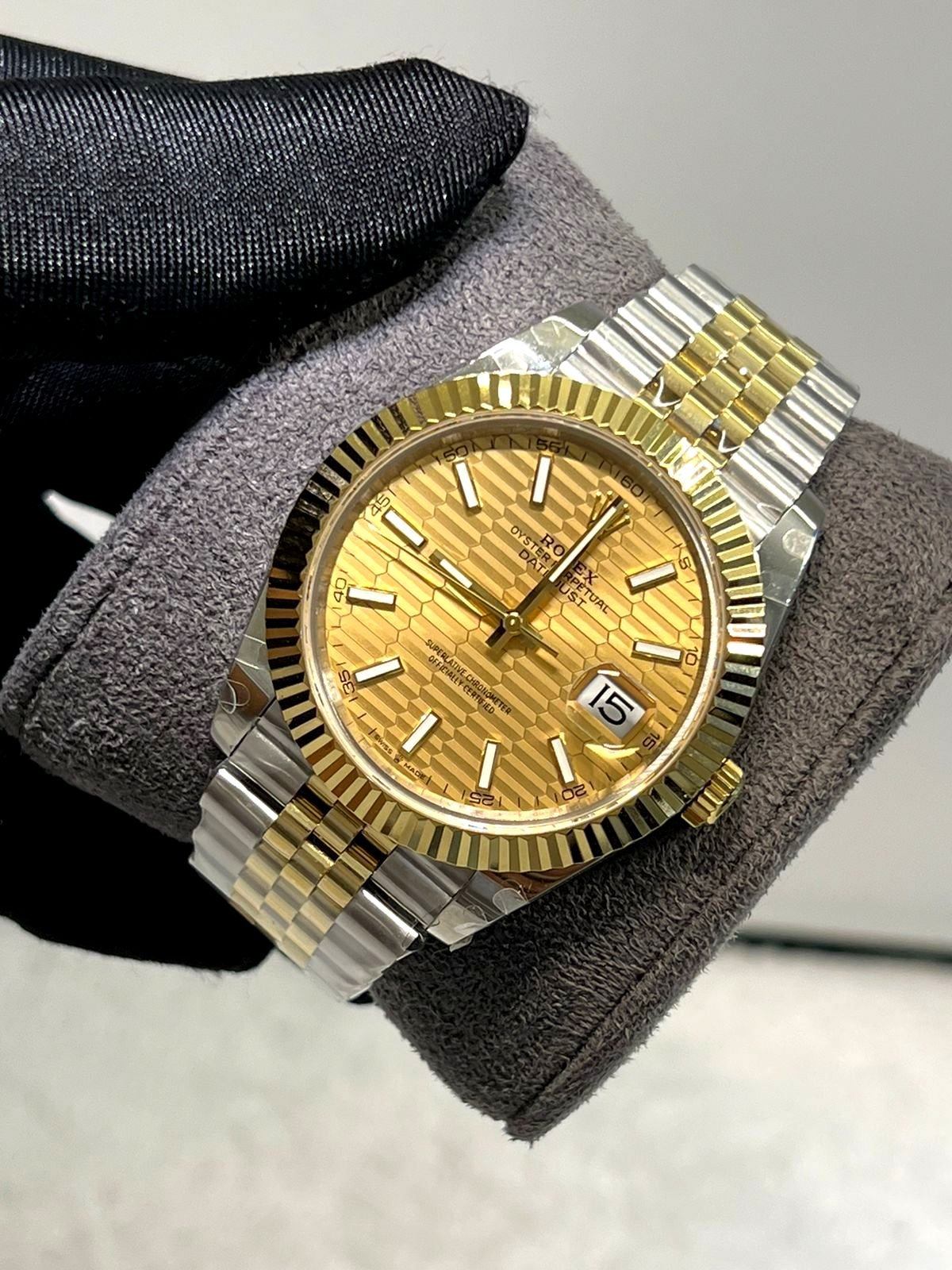 ROLEX OYSTER PERPETUAL DATE JUST 41 MM CHAMPAGNE DIAL GOLD PLATED JUBLIE BRACELET SUPER CLONE WATCH
