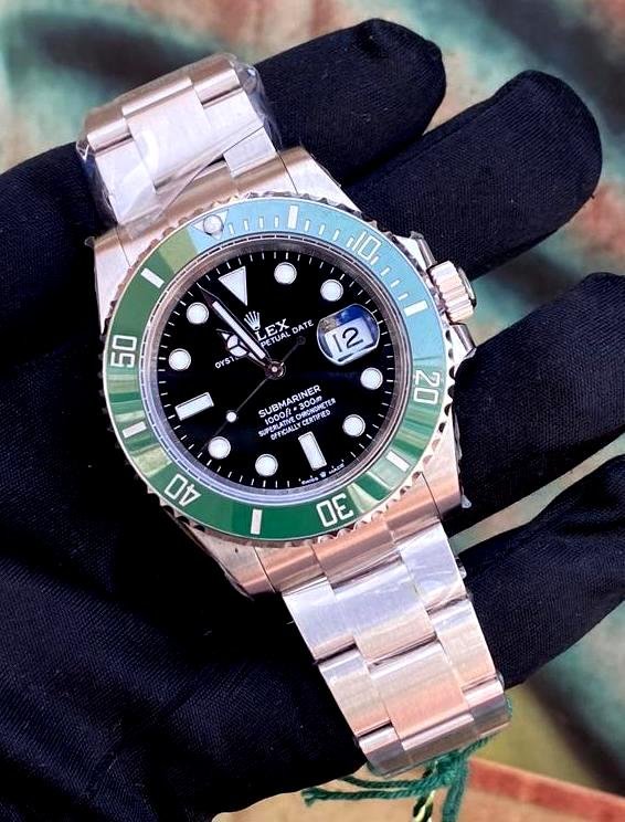 ROLEX SUBMARINER BLACK DIAL GREEN BEZEL FULL STEEL SWISS SUPER MASTER WATCH