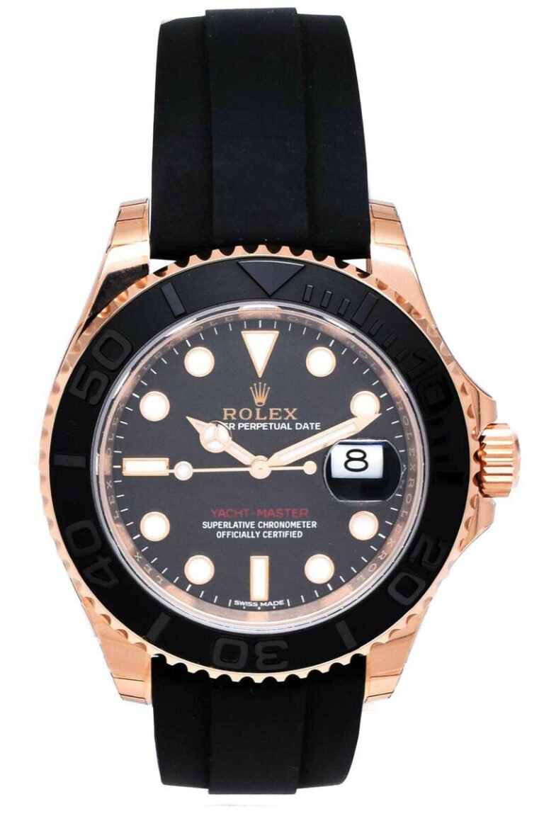 Rolex Yacht Master Black Rubber Strap rose gold bezel super clone watches in dubai